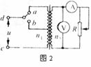 如图2所示,理想变压器原、副线圈的匝数比为10:1,b是原线圈的中心抽头,电压表和电流表A均为理想电表,除滑动变阻器电阻R以外,其余电阻均不计.从某时刻开始在原线圈c、d两端加上交变电压,其瞬时值表达式为