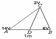 例4.匀强电场中的三点A、B、C是三角形的三个顶点,AB的长度为1m,D为AB的中点,如图所示。已知电场线平行于ΔABC所在平面,A、B、C三点的电势分别为14 V、6 V和2 V。设场强大小为E,一电量为1×10-6 C的正电荷从D点