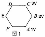 例5.如图(1),A、B、C、D、E、F为匀强电场中一个边长为10cm的正六边形的六个顶点,A、B、C三点电势分别为1.0V、2.0V、3.0V,则下列说法正确