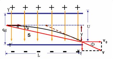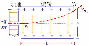场(U0)加速后进入偏转电场(U),通过加速电场的末速度即为进入偏转电场的初速度