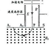 (09年广东卷)如图是质谱仪的工作原理示意图。带电粒子被加速电场加速后,进入速度选择器。速度选择器内相互正交的匀强磁场和匀强电场的强度分别为B和E。平板S上有可让粒子通过的狭缝P和记录粒子位置的胶片A1A2。平板S下方有强度为B0的匀强磁场。下列表述正确的是