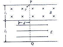 的两个毗邻的条形区域分别有匀强磁场和匀强电场,磁场方向垂直于纸面向里,电场方向与电、磁场分界线平行向右。一带正电荷的粒子以速率v从磁场区域上边界的P点斜射入磁场,然后以垂直于电、磁场分界线的方向进入电场,最后从电场边界上的Q点射出。已知PQ垂直于电场方向,粒子轨迹与电、磁场分界线的交点到PQ的距离为d。不计重力,求电场强度与磁感应强度大小之比及粒子在磁场与电场中运动时间之比。