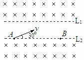 解析:A选项:据题意“带电粒子从A点以初速度v与L2成30°角斜向上射出,经过偏转后正好过B点,经过B点时速度方向也斜向上成30°角,不计重力”可以画出粒子运动的轨迹示意图如下(假设带正电)。