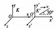 17.如图,设惯性系K′相对于惯性系K以匀速v=c/3沿x轴方向运动。在K′系的x′y′平面内静置一长为5 m,与x′轴成300角的杆。试问:在K系中观察到此杆的长度和杆与x轴的夹角为多大?
