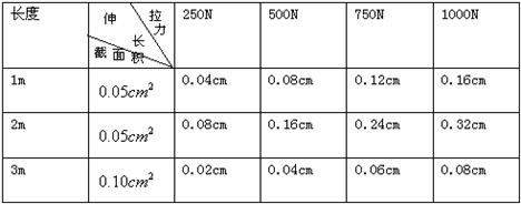 解析:⑴从数据中找拉力相同的数据比较伸长与材料的长度的关系。从数据中找拉力相同的数据比较伸长与截面积的关系。