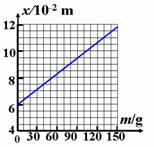 ⑴根据所测数据,在图乙所示的坐标纸上作出弹簧指针所指的标尺刻度x与钩码质量m的关系曲线。