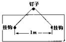 如图所示,小王要在客厅里挂上一幅质量为1.0kg的画(含画框),画框背面有两个相距1.0m、位置固定的挂钩,他将轻质细绳两端分别固定在两个挂钩上.把画对称地挂在竖直墙壁的钉子上,挂好后整条细绳呈绷紧状态.设细绳能够承受的最大拉力为10N,g取10m/s2,则细绳至少需要多长才至于断掉( )