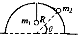 (1)m2小球静止在球面上时,其平衡位置与半球面的球心连线跟水平方向的夹角为θ,则m1、m2、θ和R之间满足什么关系?