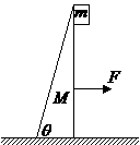 一质量为M=5Kg的斜面放在光滑水平面上,斜面高度为H=1m,M与m的动摩擦因数为0.8,m的质量为1Kg,起初m在M竖直面上的最高点。现在使M受到一个大小为60N的水平恒力F的作用,并且同时释放m,该作用持续了0.5秒后撤去,求从撤去F到m落地,M的位移为多少?