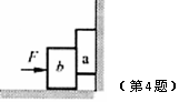放在水平地面上的物体b在水平力F作用下将物体a向光滑的竖直墙壁挤压,如图所示,a处于静止状态 ,下列说法正确的是(B )