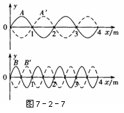 时刻的波形图线,经过1s(小于波甲、波乙的周期)后,甲的波峰A 移到A'点,乙的波峰B移到B'点,如两图虚线所示. 下列说法中正确的是