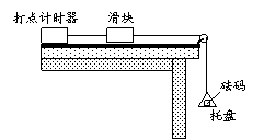 物理小组在一次探究活动中测量滑块与木板之间的动摩擦因数。实验装置如图,一表面粗糙的木板固定在水平桌面上,一端装有定滑轮;木板上有一滑块,其一端与电磁打点计时器的纸带相连,另一端通过跨过定滑轮的细线与托盘连接。打点计时器使用的交流电源的频率为50 Hz。开始实验时,在托盘中放入适量砝码,滑块开始做匀加速运动,在纸带上打出一系列小点。