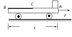 的小金属块.金属块与车间有摩擦,与中点C为界, AC段与CB段动摩擦因数不同.现给车施加一个向右的水平恒力,使车向右运动,同时金属块在车上开始滑动,当金属块滑到中点C时,即撤去这个力.已知撤去力的瞬间,金属块的速度为