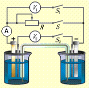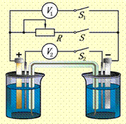 )为了研究电动势E、外电压U外、内电压U内三者之间的定量关系。实验装置如图所示,装有稀硫酸的两个烧杯内,插有作为电源正负极的铜片和锌片。利用倒插的U形玻璃管内粗棉线的毛细现象把两边烧杯中的稀硫酸溶液连成一体,这个装置实际上是一个化学电源,改变棉线的粗细,可以改变电源的内电阻。不计电表内阻对电路的影响,则: