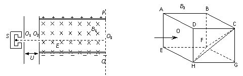 如图所示,粒子源S可以不断地产生质量为m、电荷量为+q的粒子(重力不计)。粒子从O1孔漂进一个水平向右的加速电场(初速不计),再经小孔O2垂直射入相互正交的匀强电场和匀强磁场区域,电场强度大小为E,磁感应强度大小为B1,方向如图。边长为L的长方体ABCDEFGH处在匀强磁场中,磁感应强度大小为B2,方向与ADHE平面垂直,由A指向B。长方体中HFC是一块三角形的硬质塑料板,如图所示。