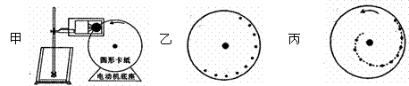 (4)为了避免在卡纸连续转动的过程中出现打点重叠,在电火花计时器与盘面保持良好 接触的同时,可以缓慢地将电火花计时器沿圆形卡纸半径方向向卡纸中心移动.则卡纸上打下的点的分布曲线不是一个圆,而是类似一种螺旋线,如图丙所示.这对测量结果有影响吗?______________________。