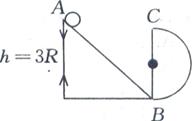 23. 如图所示,小球自斜面顶端A由静止滑下,在斜面底端B进入半径为R的圆形轨道,小球刚好能通过圆形轨道的最高点C,已知A、B两点间高度差为3R,试求整个过程中小球克服摩擦力所做的功。