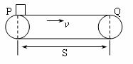 如图所示,某工厂用水平传送带传送零件,设两轮子圆心的距离为S,传送带与零件间的动摩擦因数为μ,传送带的速度恒为V,在P点轻放一质量为m的零件,并使被传送到右边的Q处。设零件运动的后一段与传送带之间无滑动,则传送所需时间为多少?摩擦力对零件做功为多少?