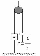 17.(20分)如图所示,物块A的质量为M,物块B、C的质量都是m,并都可看作质点,且m<M<2m。三物块用细线通过滑轮连接,物块B与物块C的距离和物块C到地面的距离都是L。现将物块A下方的细线剪断,若物块A距滑轮足够远且不计一切阻力,物块C落地后不影响物块A、B的运动。求:
