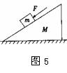 6.如图5所示,粗糙的斜面体M放在粗糙的水平地面上,物体m恰好能在斜面上沿斜面匀速下滑,斜面体静止不动.若用平行斜面向下的力F推动物块,使物块加速下滑,则斜面体: