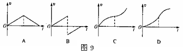 12.一个物体在多个力的作用下处于静止状态。如果仅使其中的一个力大小逐渐减小到零,然后又从零恢复到原来的大小(此力的方向始终不变),在这过程中其余各力均不变,那么,下列图9中能正确描述该过程中物体速度变化情况的是:
