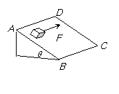 (12分)如图所示,ABCD为一倾角θ=30°的粗糙斜面,其中AD边与BC边平行,斜面上有一重G=10N的滑块,当对物体施加一个与AD边平行的拉力F时,物体恰能做匀速直线运动,已知物体与斜面问的动摩擦因数为