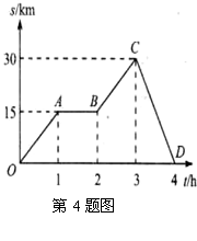 2.如图是一辆汽车做直线运动的s-t图象,对线段OA、AB、BC、CD所表示的运动,下列说法正确的是( )