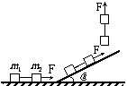 如图所示,质量为m1和m2的两个物体用细线相连,在大小恒定的拉力F作用下,先沿水平面,再沿斜面,最后竖直向上运动,在如图三个阶段的运动中,细线上拉力的大小(物体与水平面和斜面间的动摩擦因数均相同) ( )