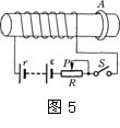 如图5所示,绕在铁芯上的线圈、电源、滑动变阻器和电键组成闭合回路。在铁芯的右端套有一个表面绝缘的铜环A,下列各种情况中铜环A中没有感应电流的是