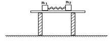 某同学把两块大小不同的木块用细线连接,中间夹一被压缩的弹簧,如图所示,将这一系统置于光滑的水平桌面上,烧断细线,当弹簧恢复原长时,两物体恰好都到达水平桌面的边缘,观察物体的运动情况,进行必要的测量,验证物体间相互作用时动量守恒。