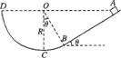(10分)如图所示,斜面AB的下端与竖直放置的光滑圆弧轨道BCD的B端相切,圆弧轨道的半径为R,圆心O与A、D在同一水平面上,θ=30º. 现有一质量为m的小物块从斜面上的A点无初速滑下,小物块与斜面AB间的动摩擦因数μ=0.5.