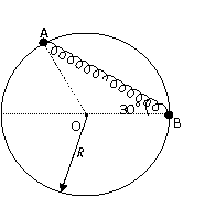 22、一半径为R的光滑圆环固定在竖直平面内,环上套两个中央有孔的小球A和B,A、B间由质量不计的原长为R的细弹簧连接着,它们处于如图中的位置时恰好都能保持静止状态,此时B球与环中心O处于同一水平面上,AB与水平线成30°夹角。已知B球的质量为m,求A球的质量和弹簧的劲度系数。