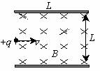1.长为L的水平极板间,有垂直纸面向内的匀强磁场,如图所示,磁感强度为B,板间距离也为L,板不带电,现有质量为m,电量为q的带正电粒子(不计重力),从左边极板间中点处垂直磁感线以速度v水平射入磁场,欲使粒子不打在极板上,可采用的办法是: