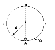 有一个竖直放置的圆形轨道,半径为R,由左右两部分组成。如图所示,右半部分AEB是光滑的,左半部分BFA是粗糙的.现在最低点A给一个质量为m的小球一个水平向右的初速度,使小球沿轨道恰好运动到最高点B,小球在B点又能沿BFA轨道回到点A,到达A点时对轨道的压力为4mg.在求小球在A点的速度V0时,甲同学的解法是:由于小球恰好到达B点,故在B点小球的速度为零,