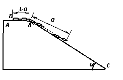 18.如图所示,AB为光滑的水平面,BC是倾角为α的足够长的光滑斜面(斜面体固定不动) .AB、BC间用一小段光滑圆弧轨道相连.一条长为L的均匀柔软链条开始时静止的放在ABC面上,其一端D至B的距离为L-a.现自由释放链条,则: