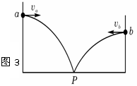 如图3图,在同一竖直面内,小球a、b从高度不同的两点,分别以初速度va和vb沿水平方向抛出,经过时间ta和tb后落到与两抛出点水平距离相等的P点。若不计空气阻力,下列关系式正确的是