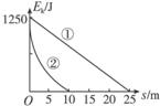 19.(10分)随着国际油价持续走高,能源危机困扰着整个世界。构建和谐型、节约型社会深得民心,遍布于生活的方方面面。自动充电式电动车就是很好的一例。电动车的前轮装有发电机,发电机与蓄电池连接。当骑车者用力蹬车或电动自行车自动滑行时,打开自动充电装置,自行车就可以连通发电机向蓄电池充电,将其他形式的能转化成电能储存起来。现有某人骑车以1 250 J的初动能在粗糙的水平路面上滑行,人车总质量为100 kg。第一次关闭自动充电装置,让车自由滑行,其动能随位移变化关系如图线①所示;第二次启动自动充电装置,其动能随位移变化关系如图线②所示,设阻力恒定,求: