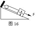 16(10分).如图16所示,A、B两物体质量分别为10㎏和20㎏,A、B之间以及B和斜面间的动摩擦因数分别为0.1和0.2,斜面的倾角为370,为使B沿斜面向上匀速滑行,应用多大的力F沿斜面向下拉A?(g取10m/s2)