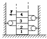 18.有四块相同的滑块叠放起来置于水平桌面上,通过细绳和定滑轮相互连接起来.如果所有的接触面间的摩擦系数均为μ,每一滑块的质量均为m,不计滑轮的摩擦.那么要拉动最上面一块滑块至少需要多大的水平拉力?如果有n块这样的滑块叠放起来,那么要拉动最上面的滑块,至少需多大的拉力?