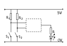 右图是一个电工应用某种逻辑电路制作的简单车门报警电路图.图中的两个按钮开关分别装在汽车的两道门上.只要其中任何一个开关处于开路状态,发光二极管就发光.请你根据报警装置的要求,在电路图的虚线框内应是何种电路?