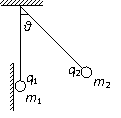 5.质量为m1、m2的小球分别带同种电荷q1和q2,它们用等长的细线吊在同一点O,由于静电斥力的作用,使m1球靠在竖直光滑墙上,m1的拉线l1呈竖直方向,使m2球的拉线l2与竖直方向成θ角,m1、m2均处于静止,如图所示.由于某种原因,m2球的带电量q2逐渐减少,于是两球拉线之间夹角θ也逐渐小直到零.在θ角逐渐减小的过程中,关于l1、l2中的张力T1、T2的变化是