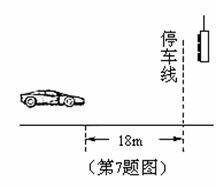 匀速行驶的汽车即将通过路口,绿灯还有2 s将熄灭,此时汽车距离停车线18m。该车加速时最大时速度大小为