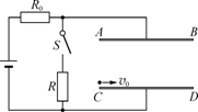 46. (18分)如图所示,电源内阻r = 1Ω,定值电阻R0 = 4Ω,AB、CD是两块正对的平行金属板,板长为l,当电路接通时,两板正对的区域存在着匀强电场.现有电子以平行于两板方向的初速度v0射入两板间并能飞出.当电键S断开时,电子飞出匀强电场区域时的速度大小为