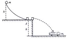 21.(14分)质量为m的小滑块自圆弧轨道上端由静止滑下,如图所示,圆弧轨道半径为R,高度为h.A点为弧形轨道上与水平桌面的平滑接点,滑块离开桌面后恰好落入静止在水平面上的装满沙的总质量为m0的小车中,桌面到小车上沙平面的高度也是h,木块落入车内与沙面接触直到相对静止经过的较短时间为t,试回答下列问题(所有接触面的摩擦不计,重力加速度g已知,小车高度不计)