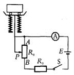 如图所示为大型电子地磅电路图,两根弹簧的下端被固定,电源电动势为E,内阻不计,电流表为理想电表.不称物体时,滑片P在A端,滑动变阻器接入电路的有效电阻最大,电流较小;称重物时,在压力作用下使滑片P下滑,滑动变阻器有效电阻变小,电流变大,这样把电流对应的重量值刻在刻度盘上,就可以读出被称物体的重量值.若滑动变阻器上A、B间距离为L,最大阻值等于电阻阻值R0,已知两只弹簧的弹力与形变量成正比,比例系数为k,所称重物的重量G与电流大小I的关系为( )