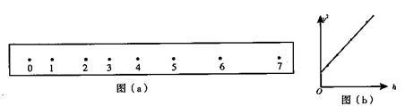 14.某同学在应用打点计时器做验证机械能守恒定律实验中,获取一根纸带如图(a),但测量发现0、1两点距离远大于2mm,且0、1和1、2间有点漏打或没有显示出来,而其他所有打点都是清晰完整的,现在该同学用刻度尺分别量出2、3、4、5、6、7六个点到0点的长度hi(i:2 3 4 7),再分别计算得到3、4、5、6四个点的速度V1和速度的平方