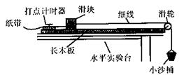 (3)在(2)的基础上,某同学用天平称量滑块的质量M。往沙桶巾装入适量的细沙,用天平称出此时沙和沙桶的总质量m。让沙桶带动滑块加速运动,用打点计时器记录其运动情况,在打点计时器打出的纸带上取两点,测出这两点的问距L和这两点的速度大小v1与v2(v1<v2)。则本实验最终要验证的数学表达式为 。