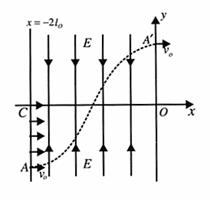 )区域内,连续分布着电荷量为+q、质量为m的粒子。从某时刻起由A点到C点间的粒子.依次连续以相同的速度V0沿x轴正方向射人电场。若从A点射人的粒子,恰好从y轴上的A′(0,lo)沿x轴正方向射出电场,其轨迹如图。不计粒子的重力及它们间的相互作用。求: