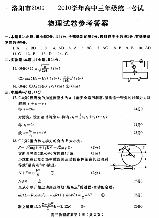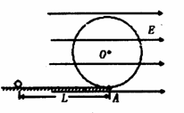 (11分)如图14所示的装置中,水平面、圆环均光滑和绝缘;匀强电场的电场强度为E,方向沿水平向右;圆环半径为R,跟圆环最低点A相距为L处的水平面上有一质量为m,电荷量为+q的小球,从静止开始沿水平轨道进入圆环,并在圆环内做圆周运动.问当qE=mg时,L应满足什么条件,才能使小球在圆环内做完整的圆周运动?