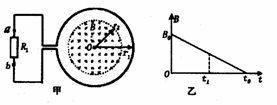 度B随时间t变化的关系图线如图乙所示,图线与横、纵轴的截距分别为t0和B0,导线的电阻不计,求0至t1时间内
